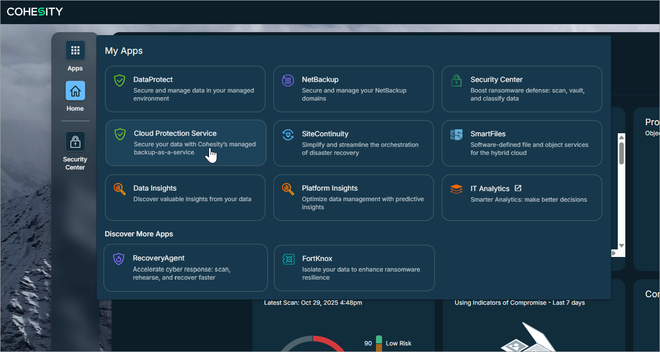 From the Apps menu, select Cloud Protection Service.