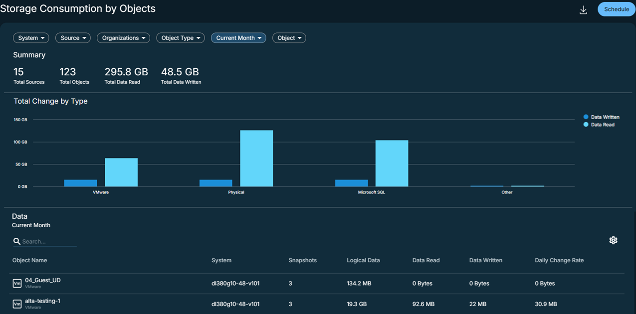 For example, in the Reports > Storage Consumption by Objects report, storage values are displayed in decimal format: